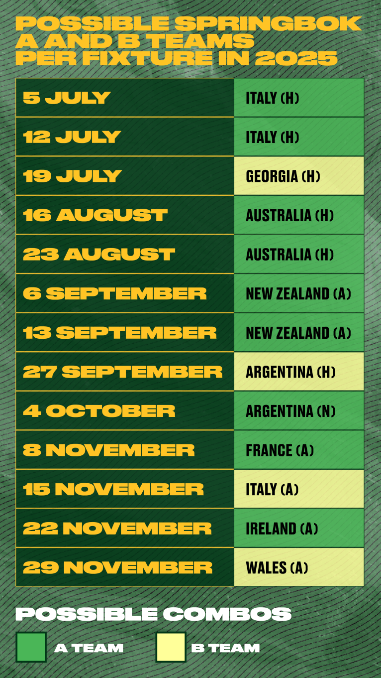 Time will tell, but all things considered, they are ideally placed. One thing’s for certain, the Boks’ campaign will be anything but boring. There was a time when Springbok rugby was predictable, in terms of selection and game plan. Last season turned that perception on its head, and if recent developments are anything to go by, there could be a few more surprises in store for the 2025 season.