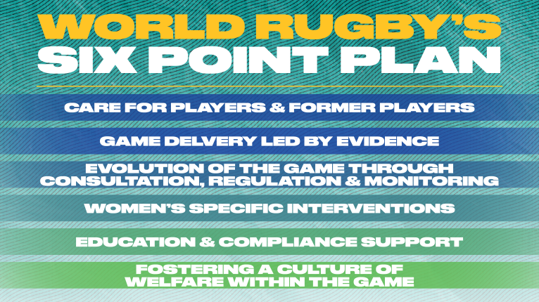 The welfare of rugby players is something World Rugby takes very seriously, and while it has been happy to do a lot of its work in the shadows, their head of Player Welfare and Rugby Services, Mark Harrington, feels it’s now time to pull back the curtains on some of hard graft they’ve done. “Without wanting to yank our chain too much, we haven’t necessarily done a great job of telling our story. The new Six-Point Plan on player welfare is an attempt to put all our initiatives in one place. It gives us a vehicle to talk holistically about some of them and report back against some of the targets in a structured way, rather than seemingly random acts of welfare. It’s our North Star in terms of what we’re trying to achieve.”